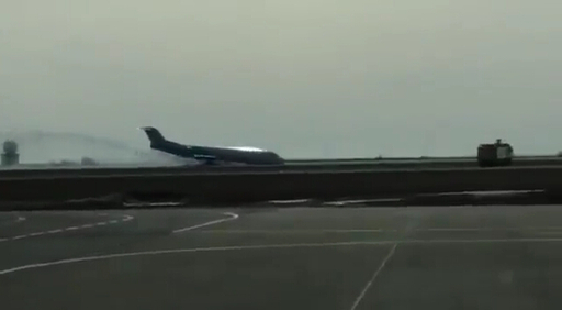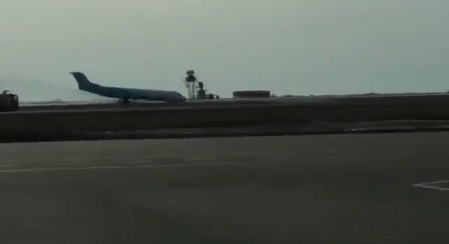 哈萨克斯坦一客机起落架出故障 机头“铲地”迫降。