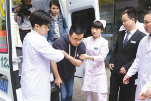 3月30日上午,一辆医疗服务车从深圳博爱医院出发,前往事发地莲塘,将强直性脊柱炎的患者楚先生接到医院。楚先生在骨科医生的专业指导下,顺利进行了术前检查。