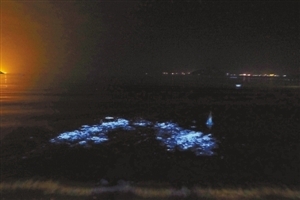 这次“荧光海”现象由带状分布的夜光藻赤潮造成,影响海区面积累积为5平方公里。