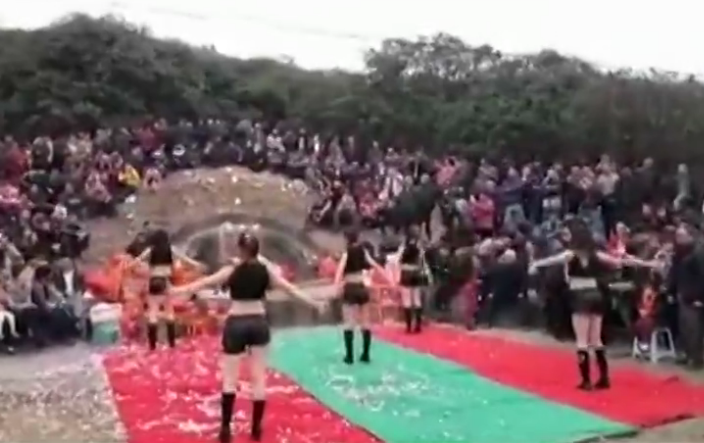 据微博@粤事情报站。今日,微博网友@粤事情报站贴出一组疑似性感美女分歧热舞“的视频截图并附上视频链接,并称:活久见!广东性感#美女劲舞拜祭祖先。片中可见有5名女子穿黑色珠片小背心及短裙,在一处山坟前大跳热舞,引来过百名民众围观。片中并没有详细交代事件发生的确实地点及时间,只见山坟前铺下红绿色的地毯,现场以大喇叭播出强劲音乐,5名女子则在山坟前卖力扭腰。