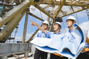 作为项目经理的陆建新,几乎每天都会到施工第一线查看。图为陆建新在平安金融中心最高层钢构施工现场指挥施工。深圳特区报记者王雨渤 摄