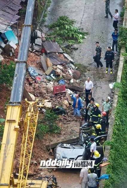 2012年8月5日下午,深圳突降暴雨,下午4时30分许,一辆小车经过龙岗布吉吉昌盛工业区附近一条下坡路时,路边陡坡塌方压倒挡土墙,车身正好被一大块墙体砸中,车上两人当场死亡。
