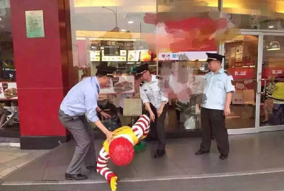 麦当劳叔叔被广州城管抓走 鞋子都断了