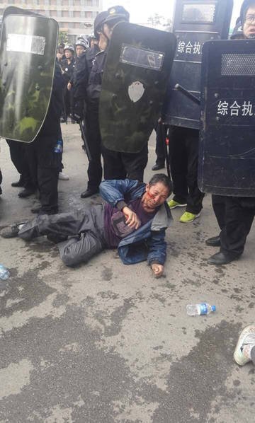 4月11日下午,云南昆明,有网友爆料称位于呈贡聚贤商业广场前发生城管暴力执法,大量手持警棍与防爆盾的城管集中围殴两名男子,一名13岁的小孩被打哭,场面失控。
