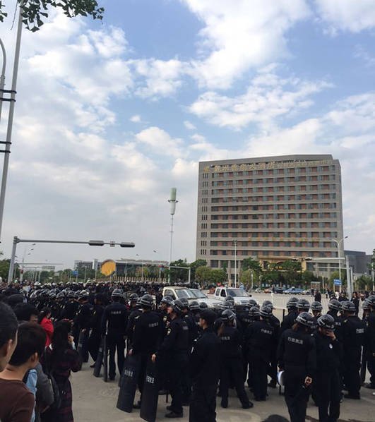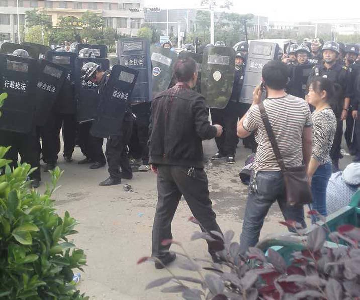 4月11日下午,云南昆明,有网友爆料称位于呈贡聚贤商业广场前发生城管暴力执法,大量手持警棍与防爆盾的城管集中围殴两名男子,一名13岁的小孩被打哭,场面失控。