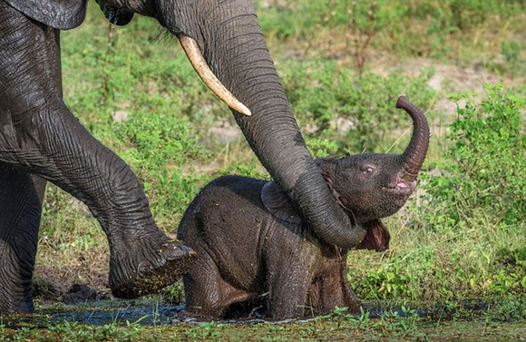 近日,南非摄影师尼尔 库伯(Neal Cooper)在博茨瓦纳的丘比河边抓拍到一组母象用鼻子捞救落水小象的照片,画面十分温馨,令人为之动容。