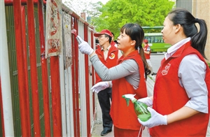 布吉街道组织义工及工作人员进行城市“洗脸”行动。