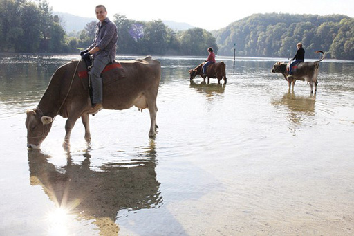 据英国《每日邮报》4月14日报道,近日,瑞士阿尔卑斯山的一家农庄推出了一项骑牛观光活动,这种新奇的方式吸引了很多游客。骑上温顺的奶牛“坐骑”,游客可以慢悠悠地欣赏阿尔卑斯山和莱茵河的秀美风光。