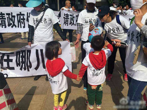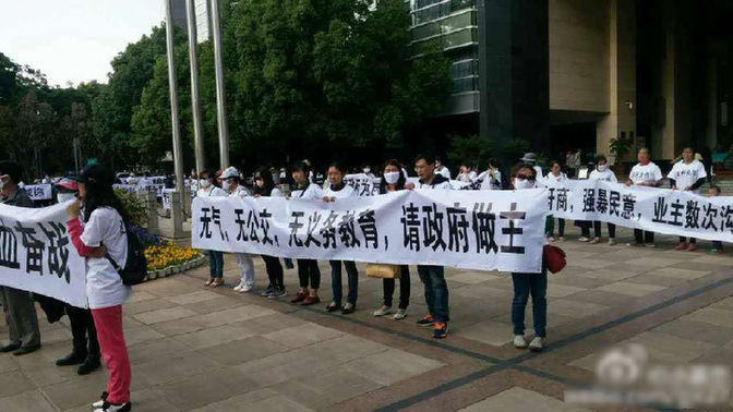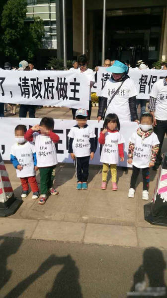 昆明一楼盘开发商以名校、双学位房忽悠购房者。购房后才发现,问题多多。无奈,只好带着孩子维权。