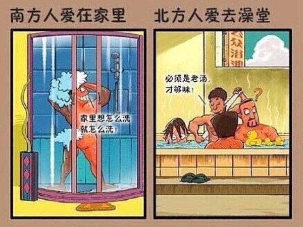 其实,南北方洗澡除了工具不一样,还有很多不同。北方在冬天隔几天,甚至一个月才洗澡一次,而在南方,一天不洗澡是邋遢的表现,让人难以忍受。