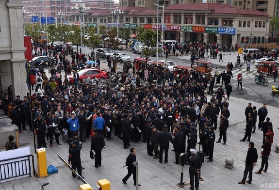 随后打传人员来到一路之隔的康徽苑。整个集中行动562人分成24组对小区30栋楼进行清理。图为康徽苑南门,云集了百余名参加这次行动的工作人员。