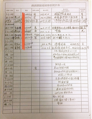 业主提供的电梯投诉记录。