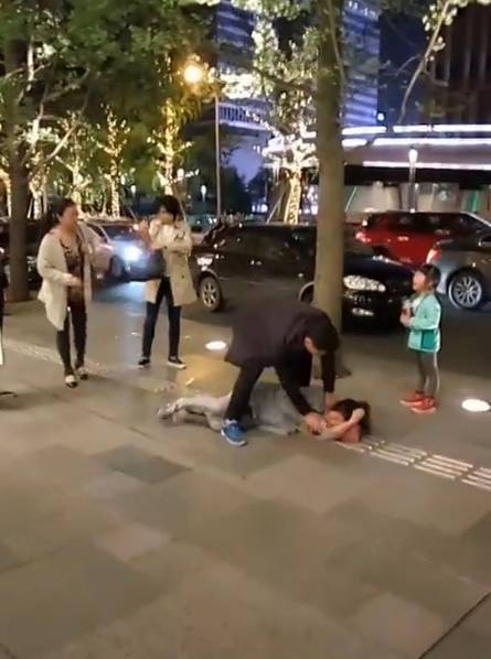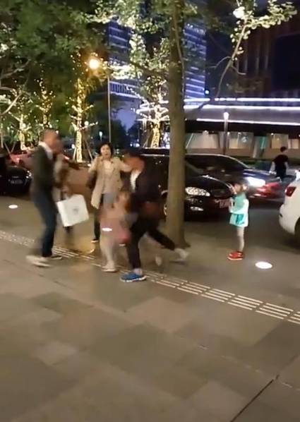 2016年4月23日,四川成都,有网友爆料成都太古里附近一男子当街暴打妻子,在一旁的女儿被当场吓哭。