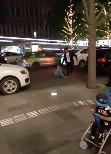 成都一男子当孩子面街头暴打妻子