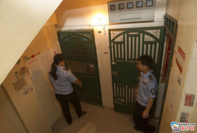 “到19时30分,全部16户居民已经搬出了12户,政府已经发布了‘清楼令’,我们力争在今晚把居民全部撤离”,深圳市罗湖区东晓街道党工委书记卢耀明告诉记者。图为街道人员上门挨家挨户敲门劝其楼中住户搬离。(图片来源:南方网)