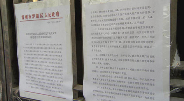 当晚21时,罗湖区紧急召开现场会,22时,深圳市长许勤作出批示,要求确保居民人身安全,加强监测,必要时撤离人员。(图片来源:南方网)