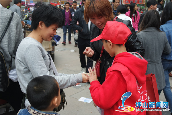 活动现场吸引了不少小朋友加入,参加活动的小朋友每人15份报纸,他们在各自家长的“护卫”下,在热闹的坪山东门大街售报。不到半小时,就接连迎来完成任务的小朋友,他们继续领取报纸继续售卖。社工沿街巡视时也对小朋友进行适当的售报指导,鼓励小报童们大胆亮出自己的报纸,并热情询问市民是否需要报纸。