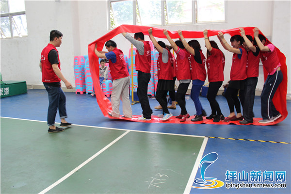 活动由7个团体游戏组成,共100余名志愿者参与其中,以竞赛的形式进行,按全程完成时间排出一、二、三名。活动中,大家的分工协作,默契的配合,赢得了队友和对手热烈欢呼,展现出了志愿者的良好风貌。最终经过激烈的角逐,汤坑志愿者服务队以总成绩8分13秒获得第一名,碧岭、沙湖分别获得第二、第三名。