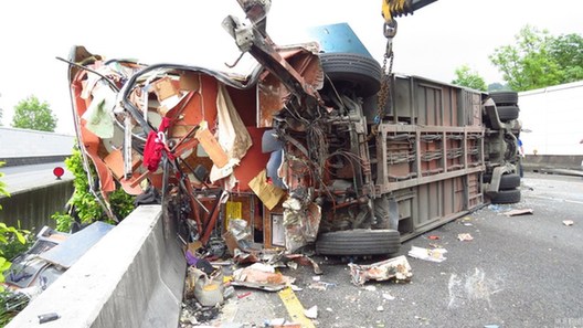 五名女性乘客伤势较轻,送往头份市为恭纪念医院,多为头部,手脚挫伤或擦伤。她们表示,全团旅客几乎彼此认识,这次特别避开劳动节假期人潮,有的全家出动或亲友相约提前来台湾观光。图为事故现场。联合报系/视觉中国
