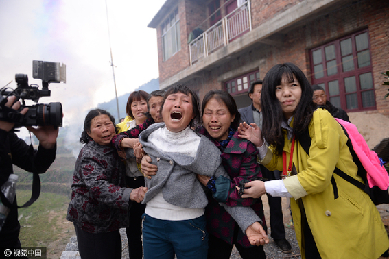 22年里,湖南邵阳女子邹其秀本来可以陪伴儿子慢慢长大,享受平凡的天伦之乐,但这一切,都因为儿子被拐卖,迟来了22年。1994年在福建莆田,邹其秀摆摊遭驱逐时,丢失了她4岁的儿子。失子之痛以及漫长的找寻在她心里积郁成结,直到2016年4月24日才解开:儿子袁丹找到了他们,回家了。图为4月24日,湖南邵阳隆回县,当儿子袁丹出现在眼前,邹其秀再也掩饰不住内心的情绪,痛哭起来。辜鹏博/视觉中国