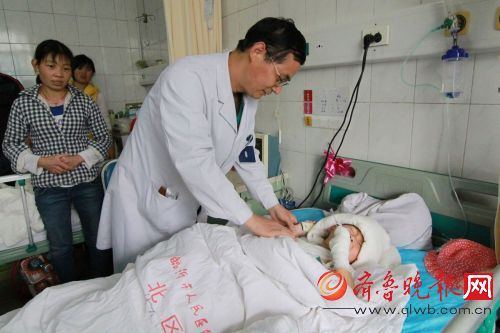 4月26日下午,主治医生李惠斌大夫在手术后到病房里观察还没从麻醉中醒来的小森。