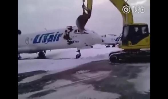 俄机场员工被炒 开挖掘机砸客机泄愤