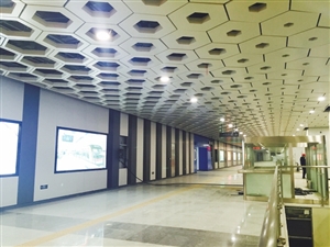 相信市民朋友一定注意到了机场站独具特色的“蜂巢顶”,作为与深圳宝安国际机场无缝对接的车站,我们特意将车站的整体设计与宝安国际机场T3航站楼的设计融为一体,提取T3航站楼蜂巢六边形造型元素,延续其全球建筑“从必然形体走向自由形体的革命”的参数化设计理念,演绎地上地下的紧密关联特点。