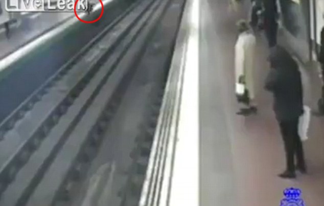 2016年4月29日报道,西班牙,地铁内一名男子疑似被站台拌倒,掉入地铁中。正在其即将被驶来的地铁碾压时,站台上的另一名男子冲入铁轨,将其脱离铁轨。