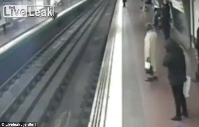 男子掉下地铁被撞瞬间 一名男子冲了下去