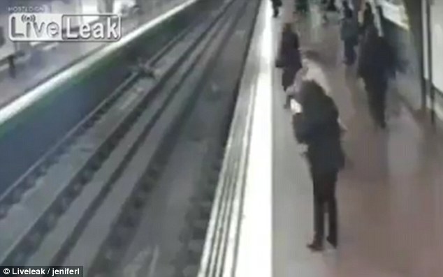男子掉下地铁被撞瞬间 一名男子冲了下去