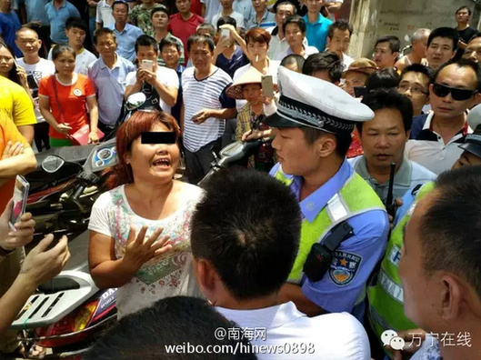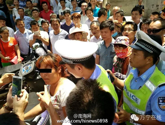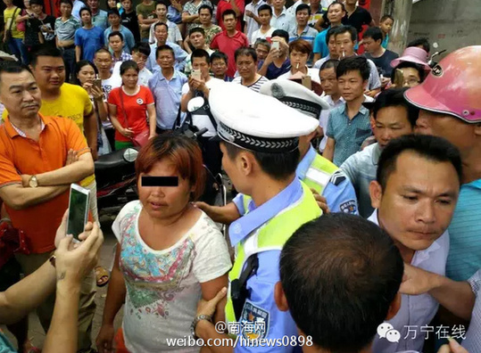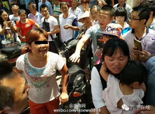 5月2日下午,据万宁当地的自媒体爆料,海南万宁,中午11点半左右,在万宁市万城镇光明北路发生一起疑似抢小孩事件,一位年约四十岁的妇女企图把一小女孩带走时,被女孩的母亲发现,群众将该女子围住并报警。