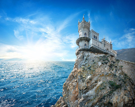 克里米亚半岛上的燕子巢城堡矗立在悬崖峭壁边缘处。(网页截图)