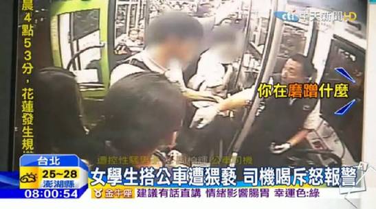 2016年5月3日报道,台湾台北,一名中年男子登上巴士时,用身体紧贴前面一名女高中生且不断磨蹭,巴士司机见状立即喝止该名中年男子并报警。