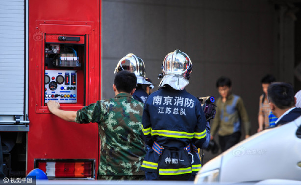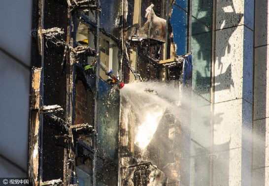 2016年5月3日,南京一大楼中央空调组机失火烧至楼顶,明火已扑灭。图片来源:视觉中国