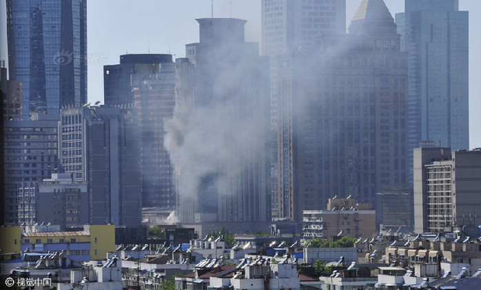 2016年5月3日,南京一大楼中央空调组机失火烧至楼顶,明火已扑灭。图片来源:视觉中国