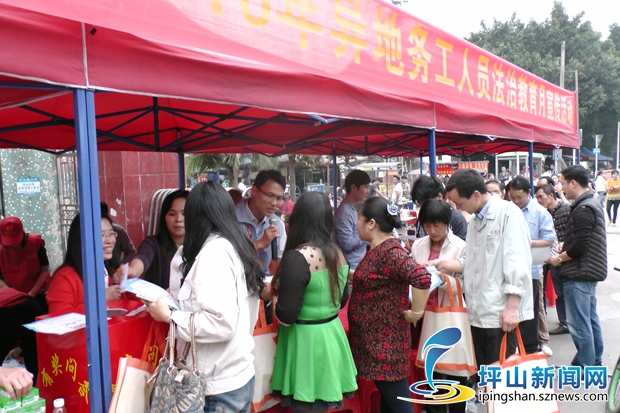 深圳新闻网坪山讯(记者 史韬 邱嘉熙 通讯员 罗茂轩 王鸥 彭尚辉)近日,坪山办事处普法办在坪山新区马峦家德工业园举办了“坪山办事处2016年异地务工人员法治宣传”专题教育活动,将普法活动和公益法律服务带到企业、带到来深建设者身边。