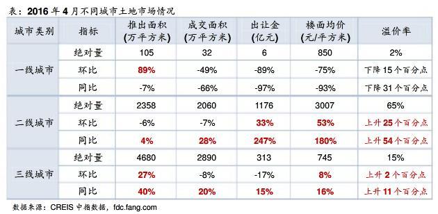 4月不同城市土地市场情况。 来源:中国指数研究院
