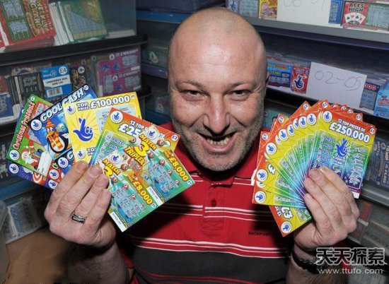 英国男子Dave Mannix在20年内共买了10万张彩票