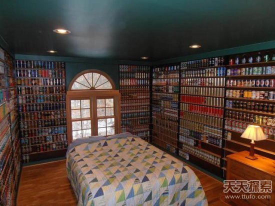 收藏家Jeff Lebo利用其收集的8.3万多个啤酒罐搭建成了一家啤酒主题酒店,如果你想要在该酒店迷你酒吧式的客房享受一晚,可需要花费379美元。据悉,Jeff Lebo从13岁时便开始收集啤酒罐,积攒了来自世界各地的数万个独特的啤酒品牌,其成就已被载入世界纪录。