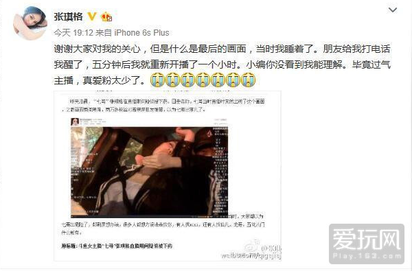 事后,“七哥”张琪格微博回应称自己只是睡着了。此事还招来了不少网友的猜疑,