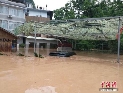 受连日暴雨等极端天气影响,中国部分地区出现泥石流等灾害,一些房屋倒塌、农作物受损,川黔铁路一度中断运行。4日以来,广西多地出现暴雨天气。记者7日从广西民政部门获悉,截至7日17时,广西十余个县区出现风雹灾害,已造成7.27万人受灾,紧急转移安置1171人;农作物受灾面积3.38千公顷;倒塌房屋63户148间,严重损坏房屋95户228间,一般损坏房屋569户1130间。这是5月8日拍摄的被洪水围困的广西桂林市阳朔县城。诸葛全生 摄