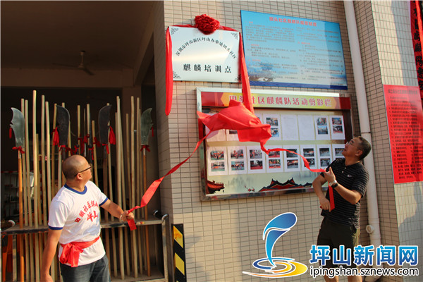 当天,在简短而隆重的祈福仪式后,坪山办事处文体服务中心袁主任与田头社区综合党委吴书记共同为社区麒麟培训点揭牌,标志着田头社区有了自己的训练基地。