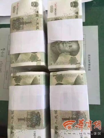 老人来时推了一辆破旧不堪没有链条自行车,令在场民警心酸不已,4000元对他来说或许是三四个月的收入。老人说:“这些钱不是咱的,俺不能拿!”斩钉截铁的回答令人肃然起敬。图为老人捡到的现金。(华商网)