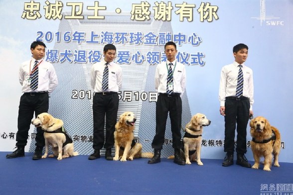 搜爆犬戴红花"退役" 爱心市民领养回家