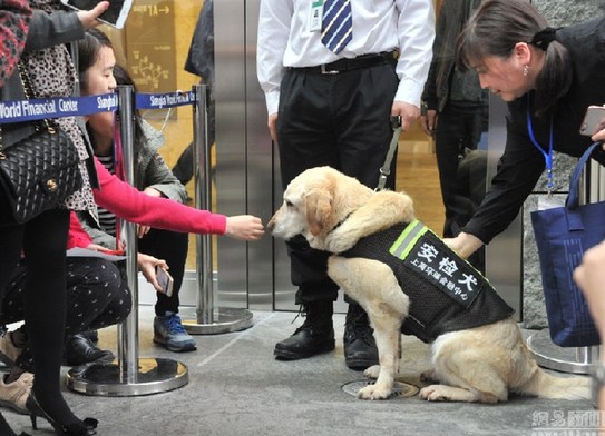 搜爆犬戴红花"退役" 爱心市民领养回家