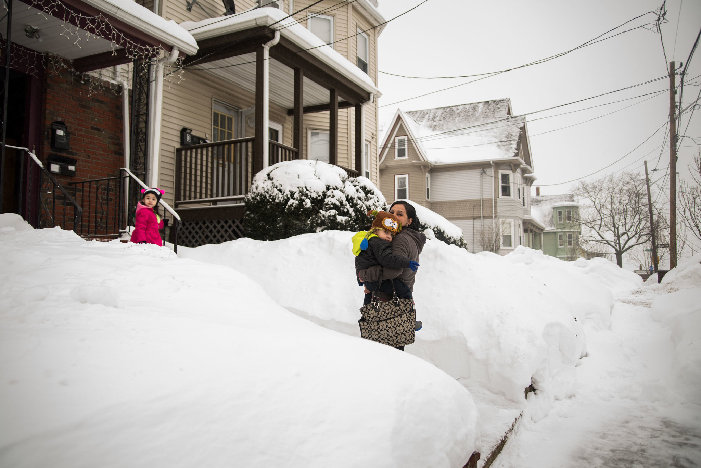 Salara(左),和他们的母亲Doris DeLeon。对Doris来说,冬天是最糟糕的季节。她是一个单身妈妈,没办法开车。