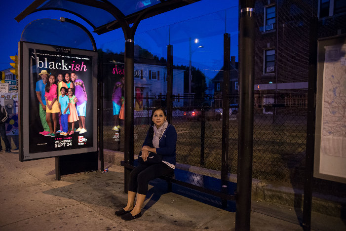 把儿子送到保姆家后,Doris DeLeon在等待早上5:40到站的公共汽车。