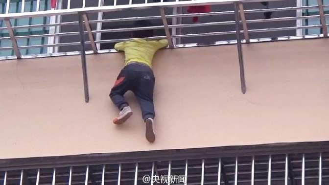 3岁男童头被卡悬4楼空中 消防紧急救援