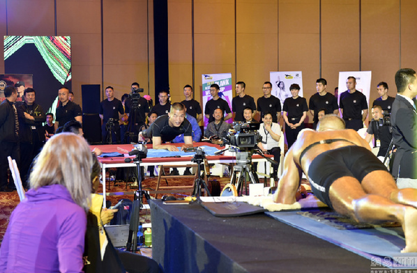 来自北京市公安局特警总队的毛卫东以8小时01分01秒的成绩打破之前由自己创造的4小时26分的平板支撑吉尼斯世界纪录,毛卫东特意选择8小时01分结束本次挑战,主要致敬八一建军节,080101也意味着中国军人NO.1。张耀东/视觉中国