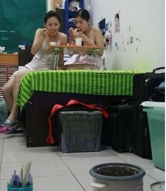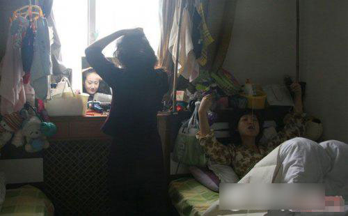 宿舍里有航班任务的化妆,梳头,穿衣准备。没任务的做自己喜欢的事